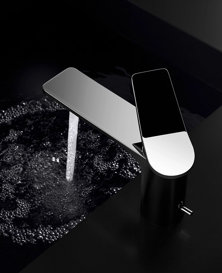 LISSÉ invites the touch.It combines basic, clear-cut, geometric shapes with relaxed, curving countours. Generous surfaces meet narrow edges. Skillfully designed yet modest, it sets the tone in any bathroom.One special hallmark of this fitting is the dynamic form of the lever, contrasting playfully with the minimal body and the flat spout to create a striking accent.Discover the fascinating product world of LISSÉ: progressive bathroom fitting designs for washstands, showers and tubs.LISSÉ makes an impression with a design language full of exciting contrasts: Basic, clear-cut, geometric forms and relaxed curving contours meet generous surfaces and narrow edges. The flat spout with rounded corners is especially characteristic of LISSÉ. A design that is as clean as it is ornamental.