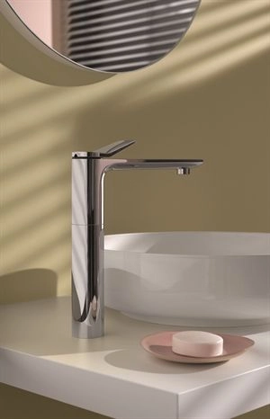 LISSÉ invites the touch.It combines basic, clear-cut, geometric shapes with relaxed, curving countours. Generous surfaces meet narrow edges. Skillfully designed yet modest, it sets the tone in any bathroom.One special hallmark of this fitting is the dynamic form of the lever, contrasting playfully with the minimal body and the flat spout to create a striking accent.Discover the fascinating product world of LISSÉ: progressive bathroom fitting designs for washstands, showers and tubs.LISSÉ makes an impression with a design language full of exciting contrasts: Basic, clear-cut, geometric forms and relaxed curving contours meet generous surfaces and narrow edges. The flat spout with rounded corners is especially characteristic of LISSÉ. A design that is as clean as it is ornamental.