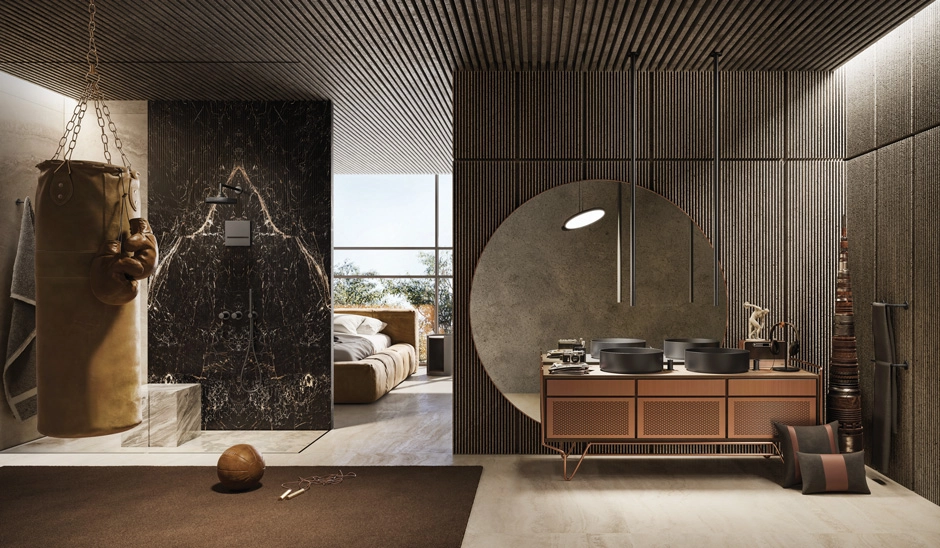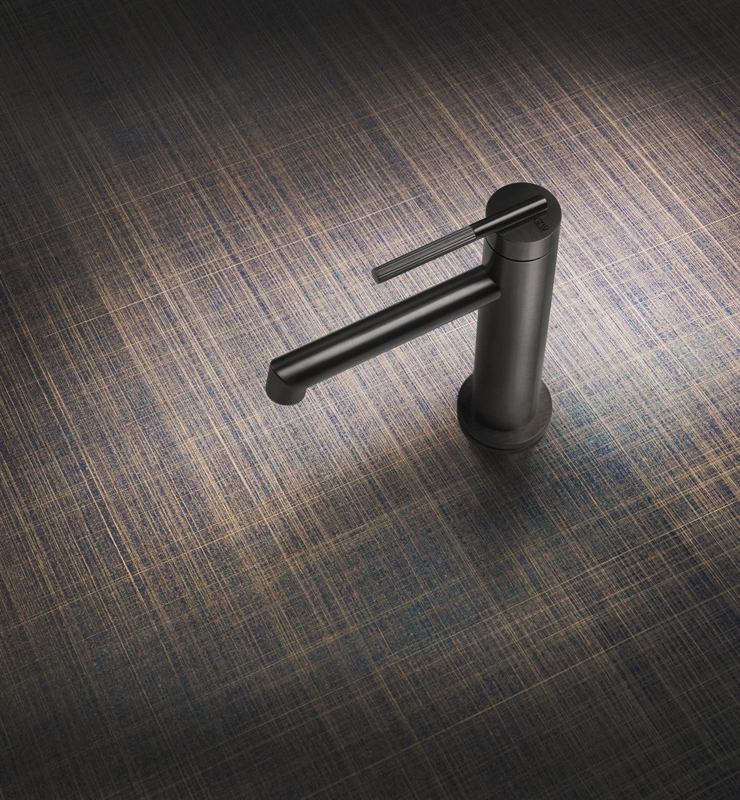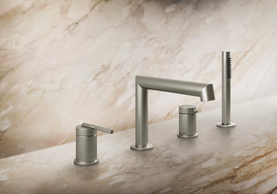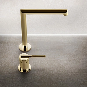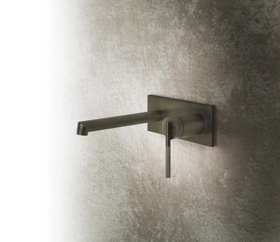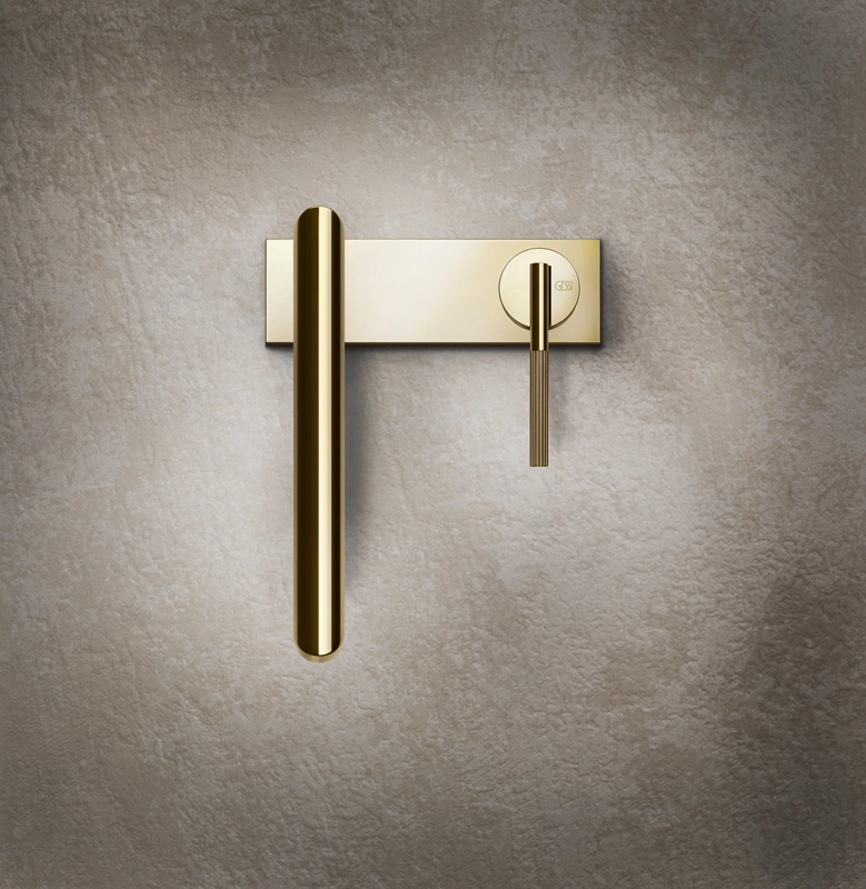 Ingranaggio is a game of interlocking mechanics, precious and current, suitable for any stylistic solution. The bathroom is the space in which to recover energy relating to ourselves and reclaim our archaic part.The Ingranaggio shape is characterized by the thin tubular lines of the spout that bends at the end and intersects with the body, which is interrupted by the cut of a low and integrated handle, on which rests the tubular lever, divided into two parts and embellished with a delicate linear decoration. The concept of linearity is emphasized by the extra-slim proportions reported on all elements.
