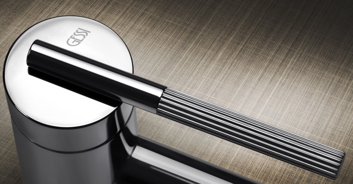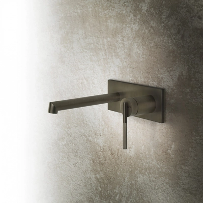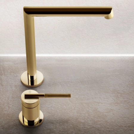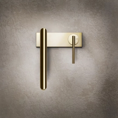 Ingranaggio is a game of interlocking mechanics, precious and current, suitable for any stylistic solution. The bathroom is the space in which to recover energy relating to ourselves and reclaim our archaic part.The Ingranaggio shape is characterized by the thin tubular lines of the spout that bends at the end and intersects with the body, which is interrupted by the cut of a low and integrated handle, on which rests the tubular lever, divided into two parts and embellished with a delicate linear decoration. The concept of linearity is emphasized by the extra-slim proportions reported on all elements.