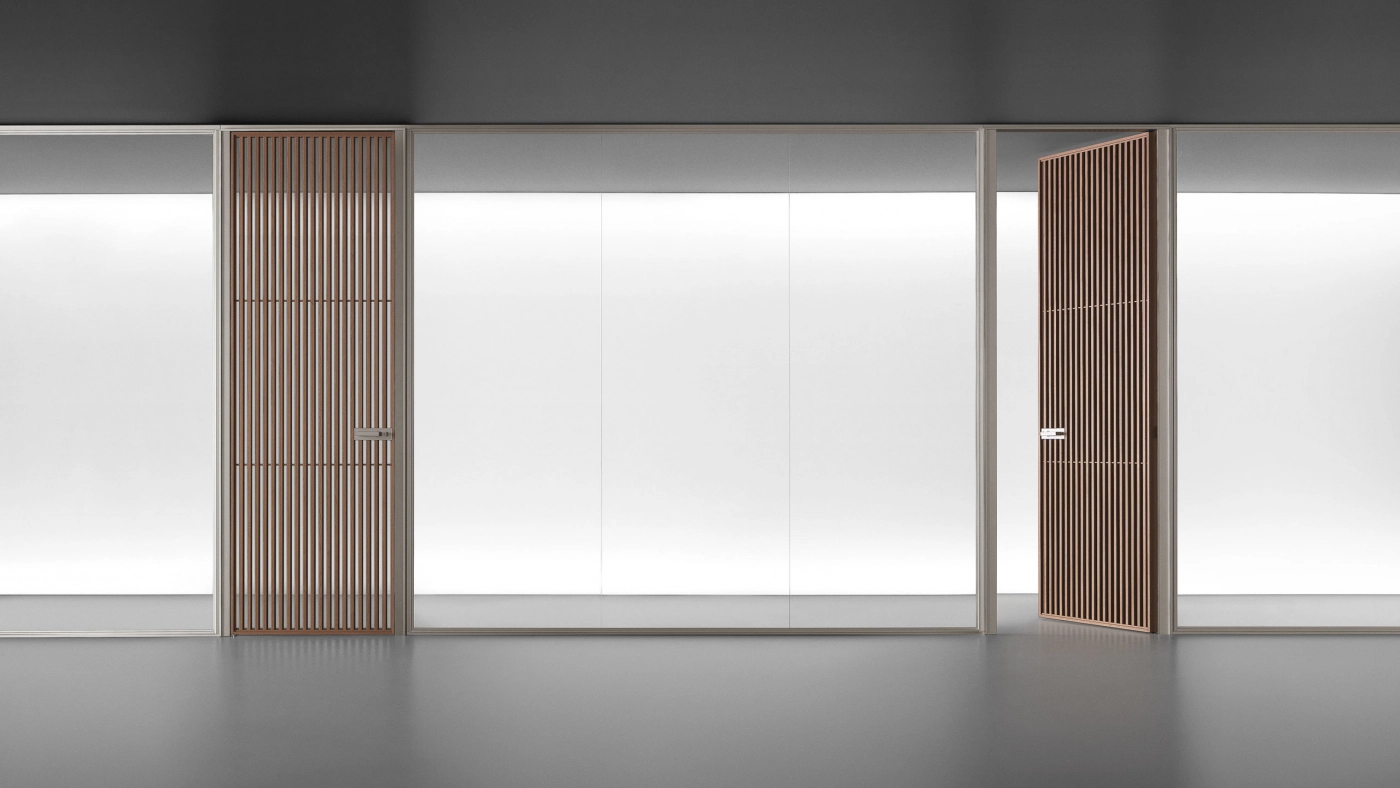 Sail result of a careful technological research and of an elaborate manual assembling work of the components, Sail becomes a real decorative item, combining high technical and functional performance with an original aesthetic and a strong expressive value. Endless combining solutions between Rimadesio glass finishes and the aluminium structural element, also available in walnut or heat-treated oak veneered version.