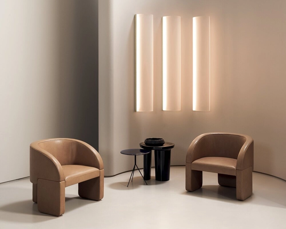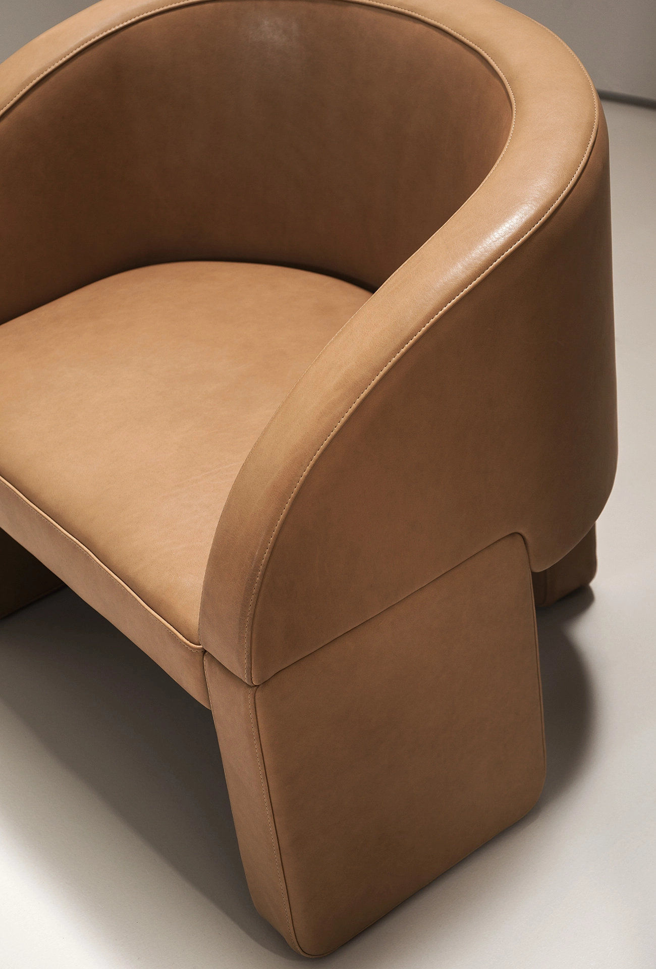 Frame in poplar plywood. Differentiated density polyurethane foam filling with acrylic fibre cover. Springing with woven elastic straps of covered rubber.