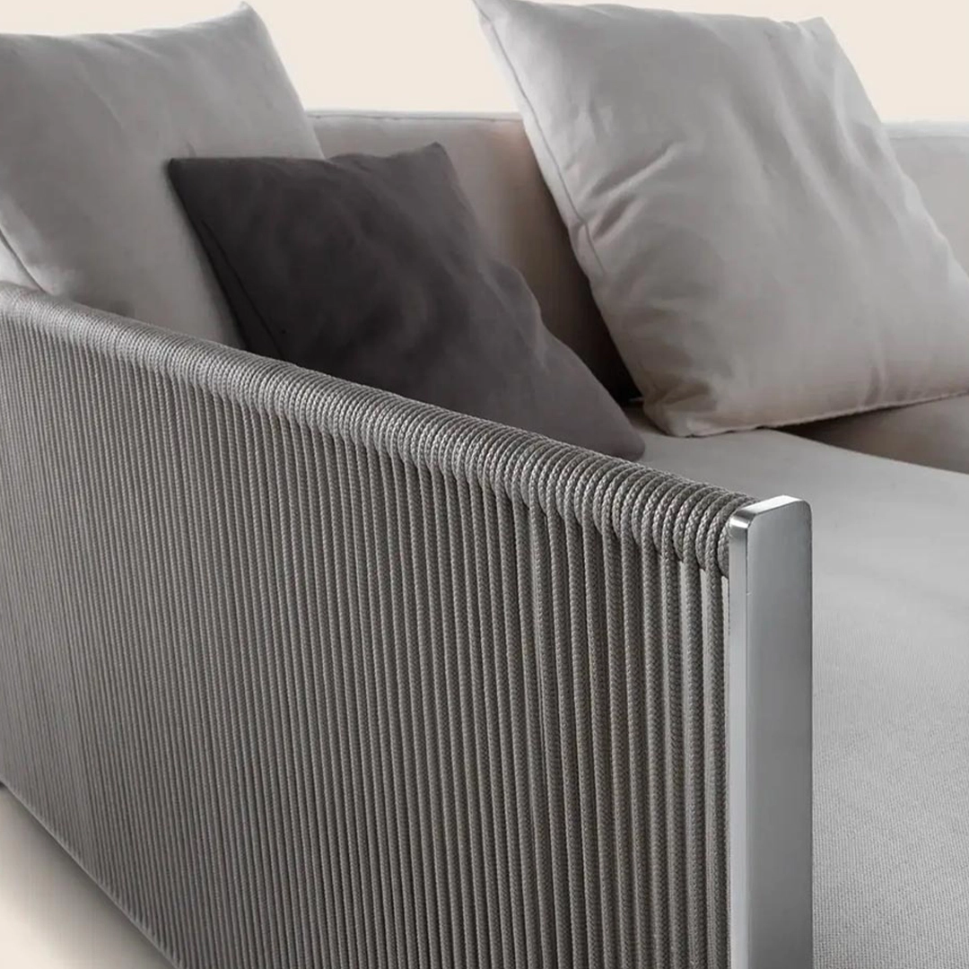 Woven materials, especially dear to Flexform, have inspired many products in the indoor collection, and weaving is now the motif featured in the Vulcano seating system. Concepts like compositional flexibility and a high degree of customization, coupled with a determination to find just the right materials to ensure optimum outdoor performance, are the core features of the Vulcano chaise longue design. The base is made of marine plywood, while the structure is in 316 austenitic stainless steel, a super alloy that ensures superior performance in outdoor settings, and is clad in elegant woven upholstery made of polypropylene fiber or polyurethane rubber, available in a sophisticated palette of colors. The chaise longue rests on a perimeter frame in 316 austenitic stainless steel and nylon pads. To ensure optimal outdoor performance, all the upholstered cushions are encased in a special lining material made of breathable water-repellent fabric, while the vast collection of outdoor upholstery fabrics guarantees excellent resistance not only to the effects of weather and the sun but also to chlorine and salt water. Use of their respective covers to keep the product in top condition and maintain its original appearance as long as possible is highly recommended.