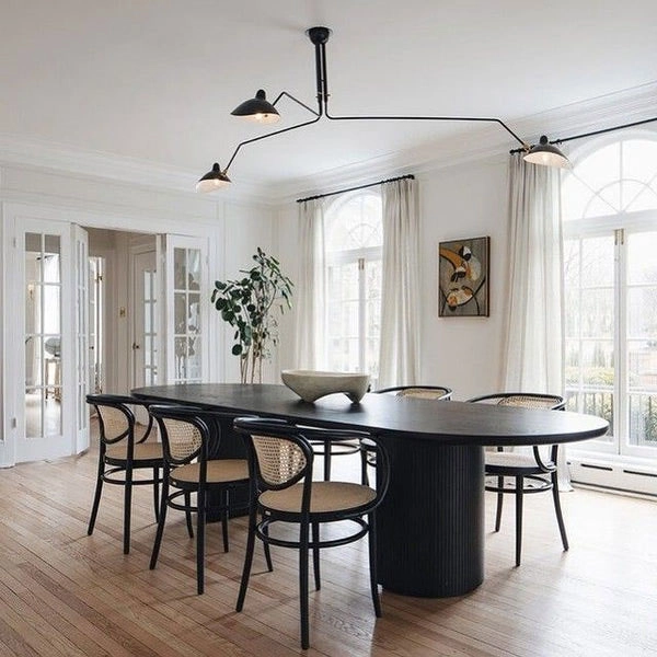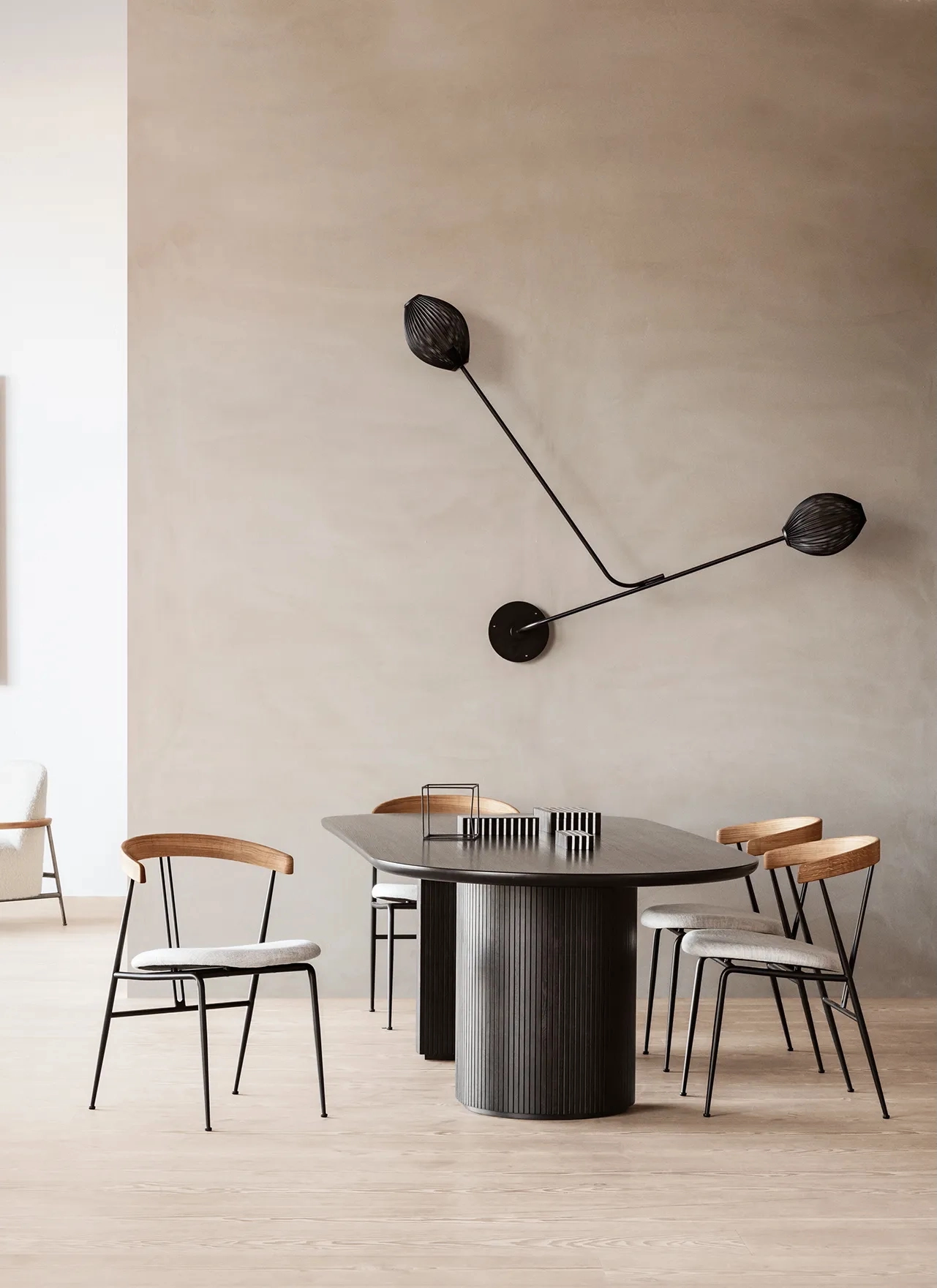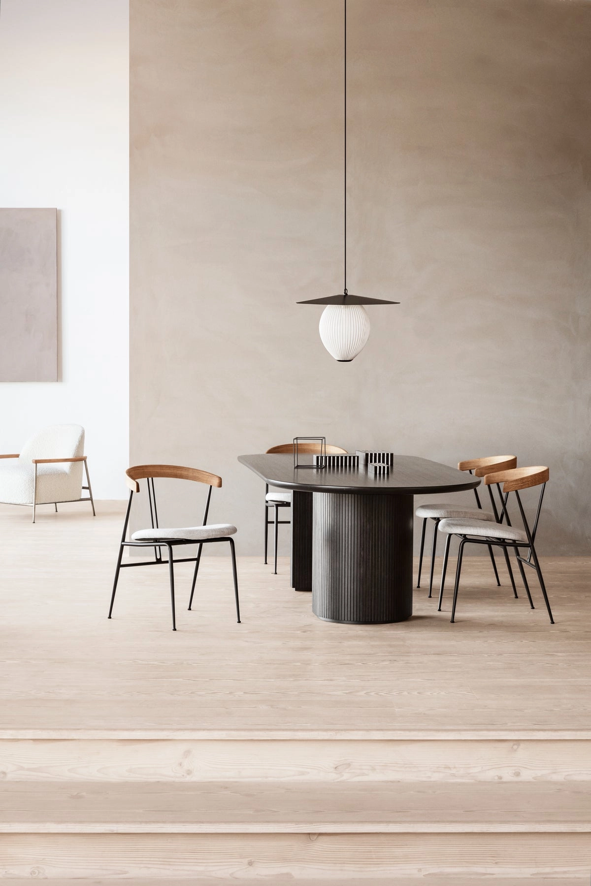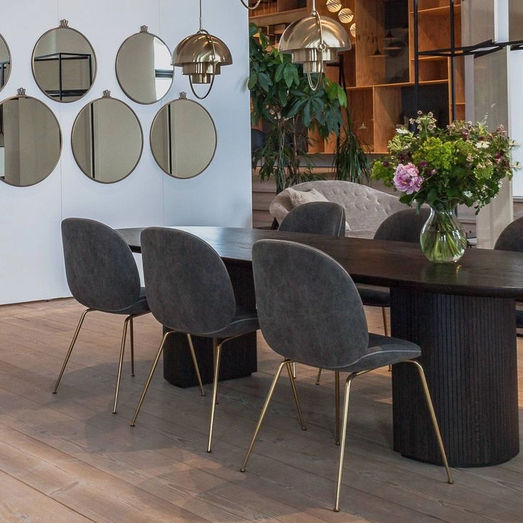 Moon is a beautiful modern dining table from luxury Danish design house, Gubi. Its generous proportions are complemented by an array of organic textures, inviting tactility and glamour into the dining room. The interplay between the beautiful solid oak table top and the smooth half-moon shaped bases, at once structure and ornament, creates a simple yet strong identity for the design. The result is an elegant table with clear references to traditional Danish carpentry, where the tribute of marriage between design and craftsmanship is in focus.