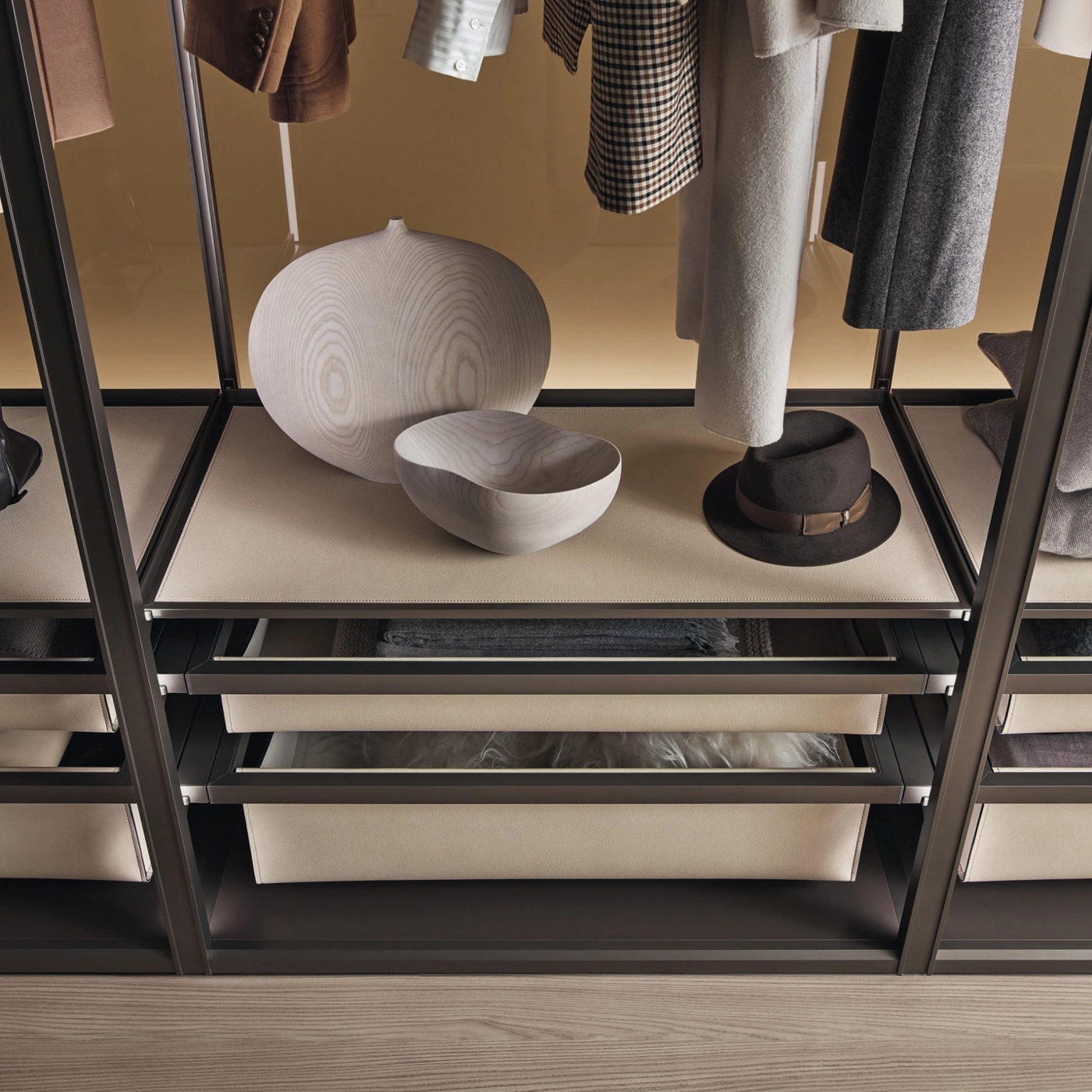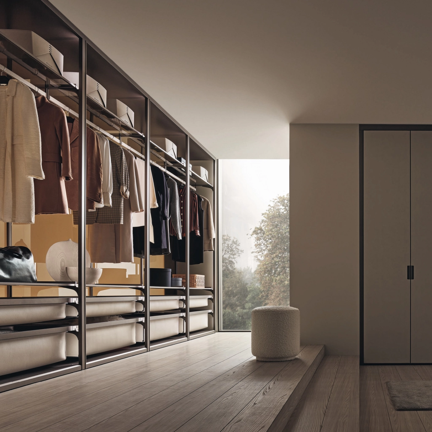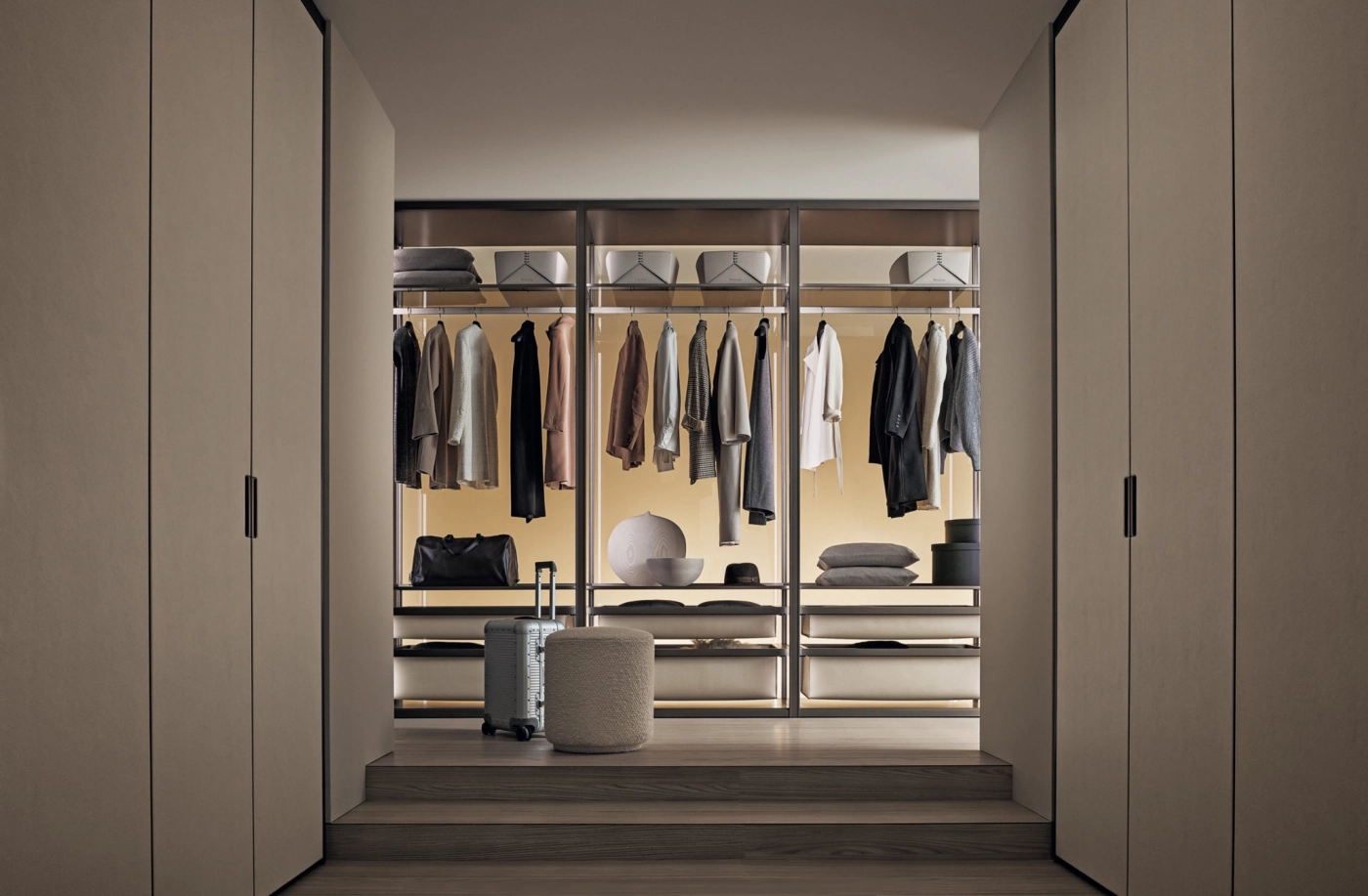 Cover Open is an innovative wardrobe solution, always custom-made and designed to integrate perfectly in the Freestanding version with hinged doors. Available in linear, corner and C-shaped compositions, it guarantees the maximum degree of customization thanks to the wide range of equipment included in the Cover system.