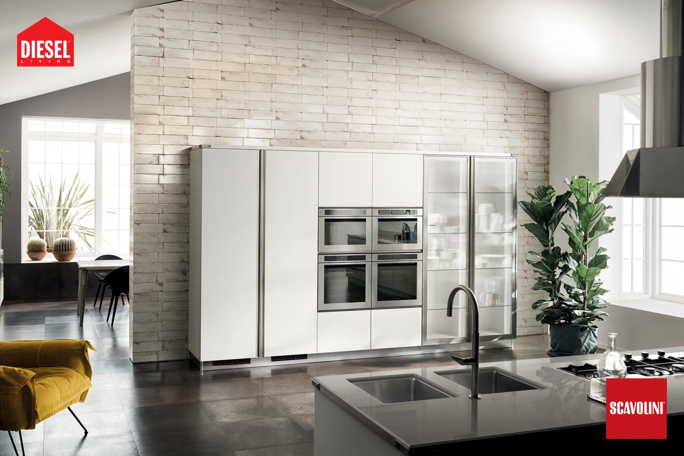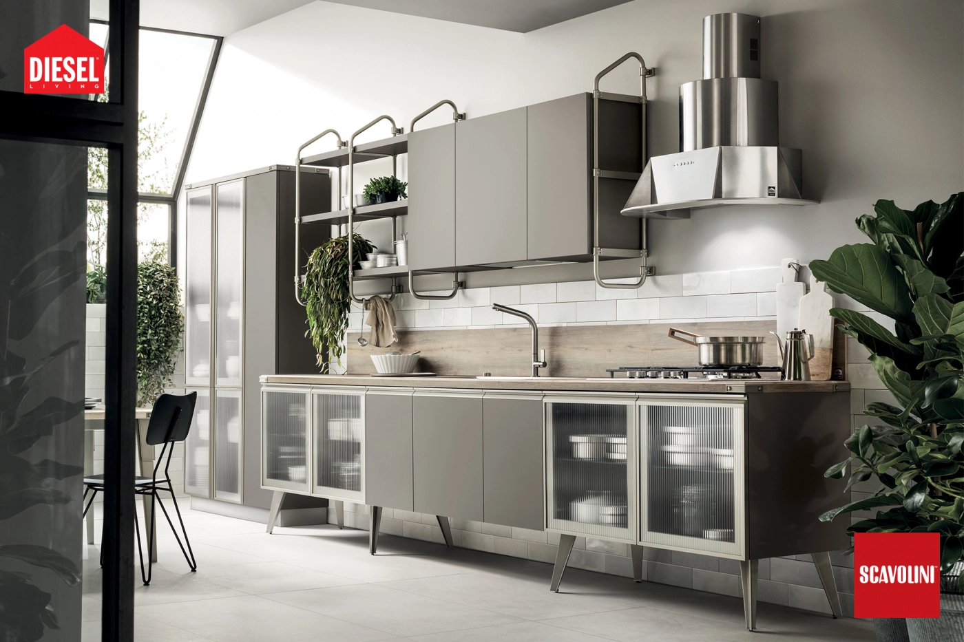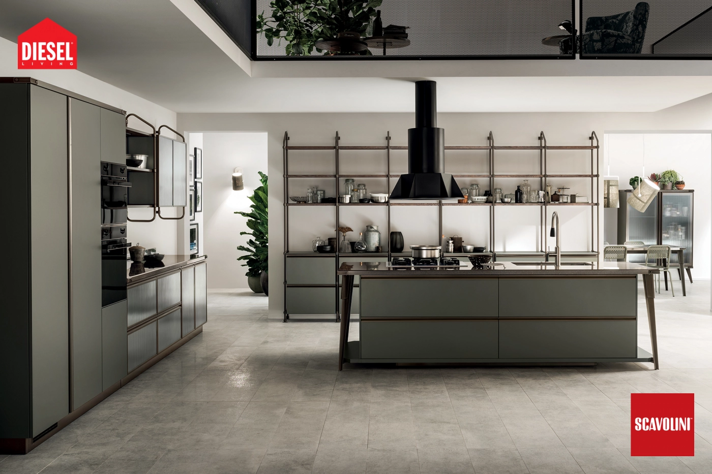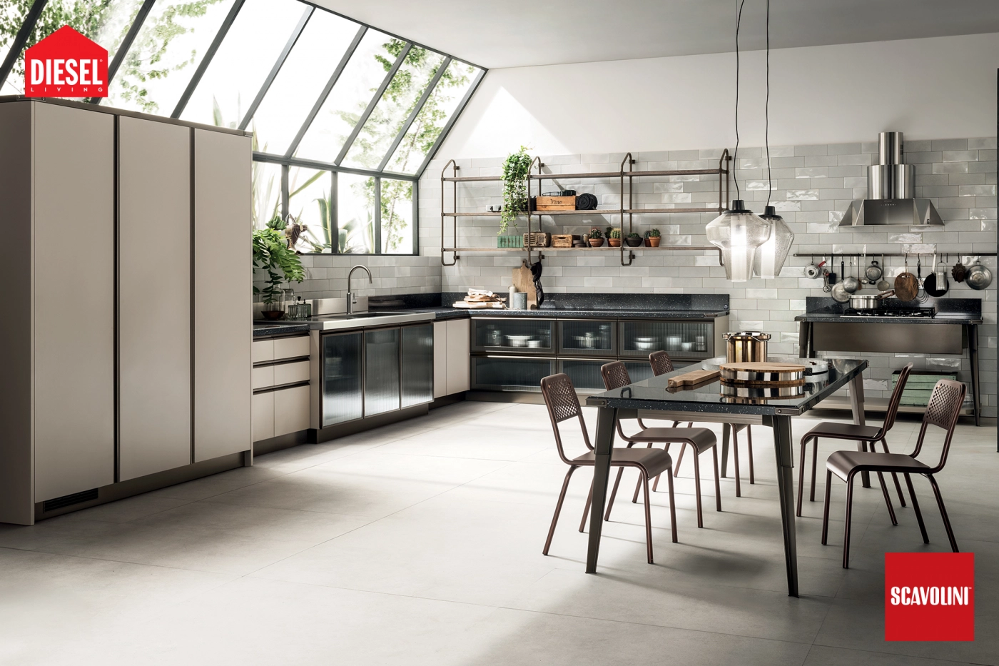 Industrial design finds a new balance. The result of a partnership between the Diesel Living team and Scavolini, Diesel Open Workshop is a new chapter following on from the astounding success of the Diesel Social Kitchen, "a new idea" that is set to be just as successful, if not outright more effective in evocative terms.Diesel Open Workshop: the kitchen restyled with an industrial twist.