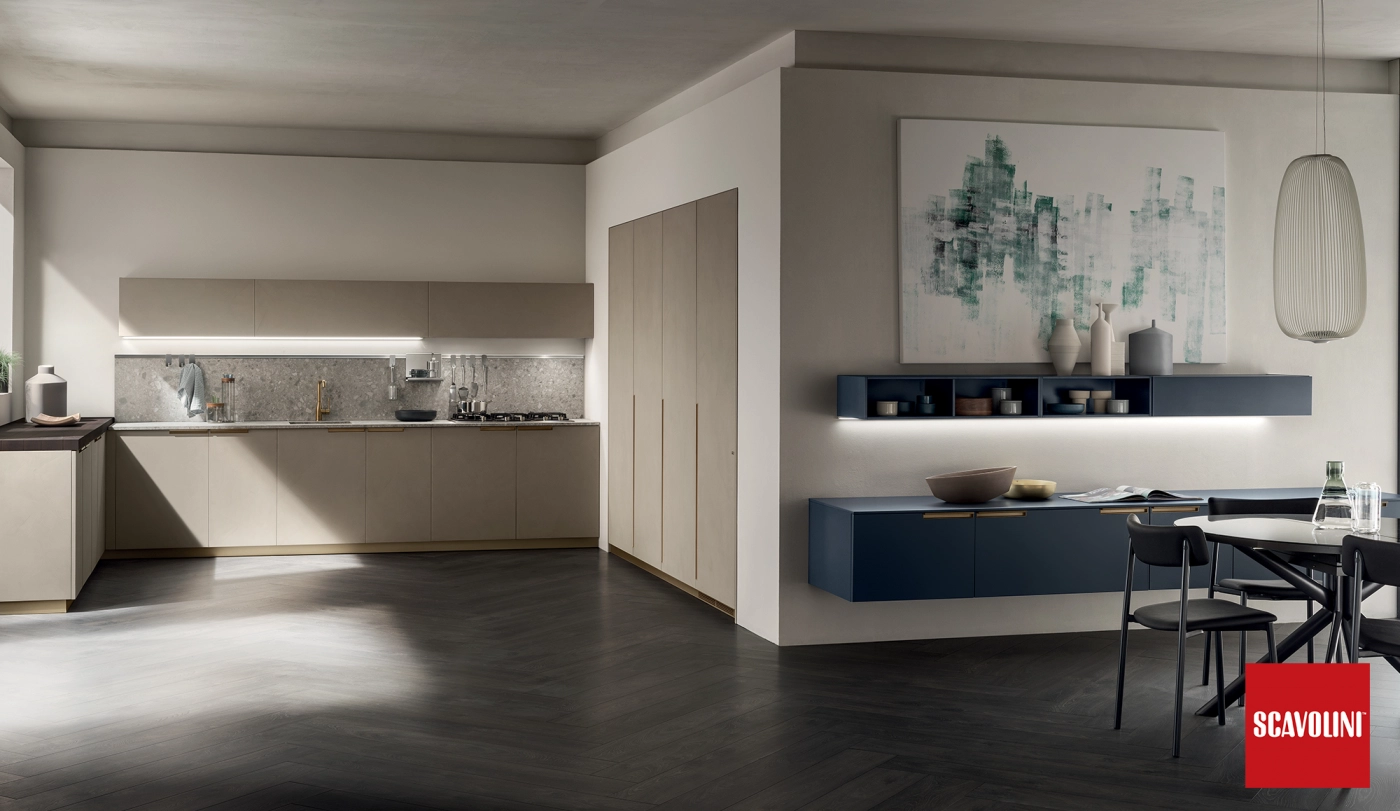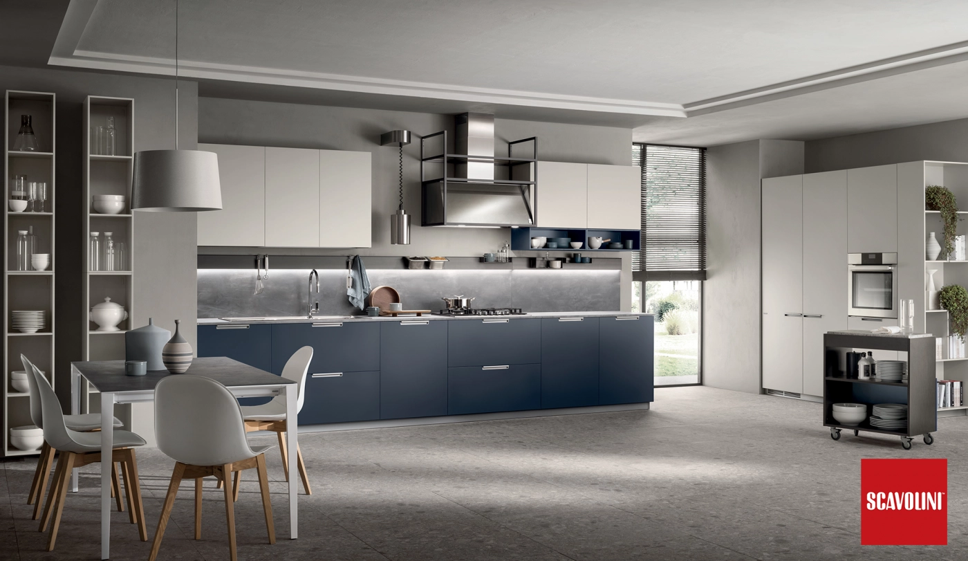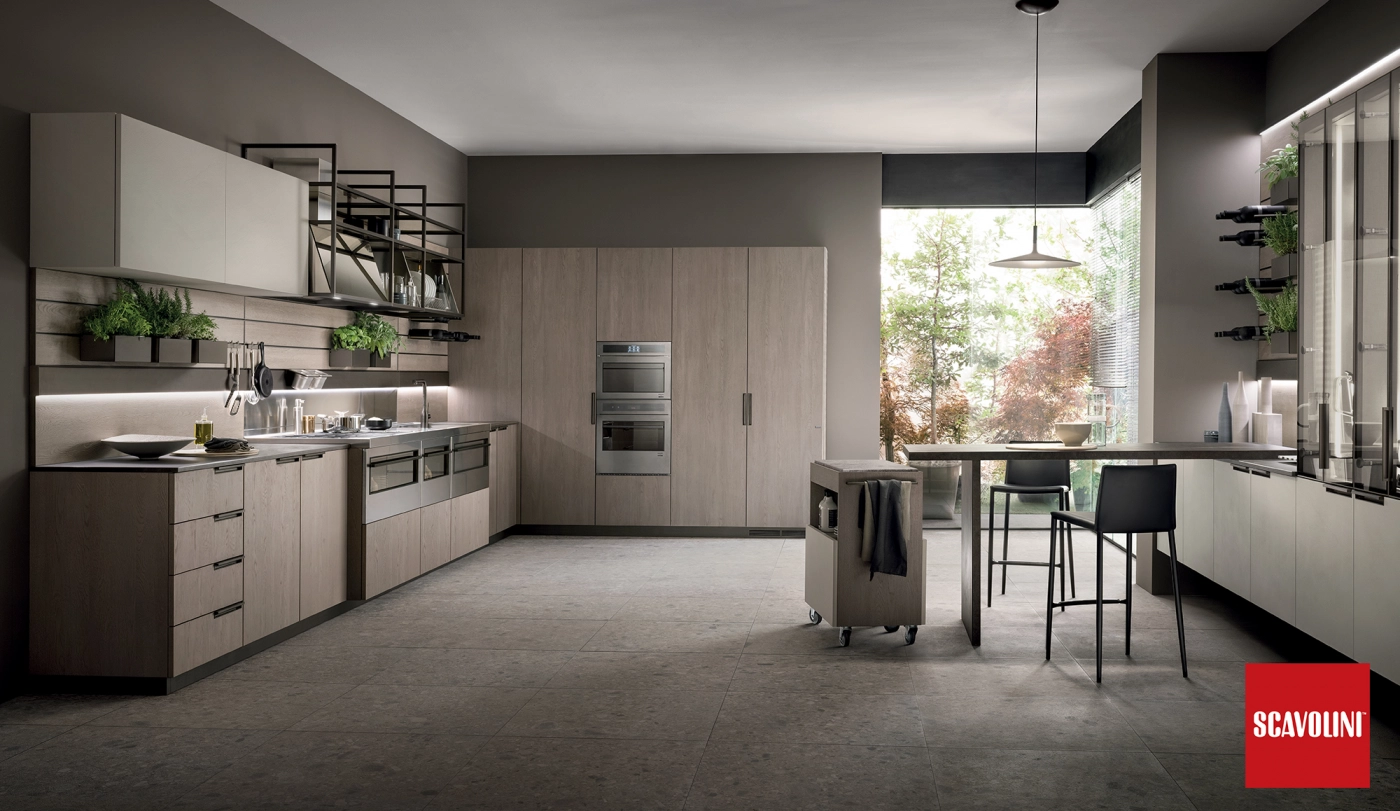 From a two-year collaboration between Scavolini and a renowned Michelin-starred chef comes MIA, a unique project which brings the features of a “great kitchen” to your home.The keyword is professionalism.Many “ingredients” come together to create this “tasty”, comfortable, custom-sized kitchen space in which to up your cooking game: an exclusive handle design, new finishes to choose from (Pinstripe Oak decorative melamine, Dark Steel, Stopsol glass and Clay Biomalta), and a stunning Line System affording functional and sophisticated customisations. But, above all, new element modularity, to amplify the capacity of base units and wall units. Even the appliances supplied (including a vacuum drawer with new marinating function and a food-warming lamp) enhance the desire and love of cooking hidden in each one of us: technology that brings a touch of “refinement” even to everyday meals.