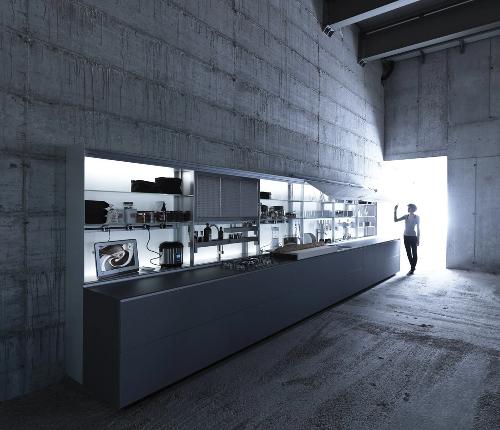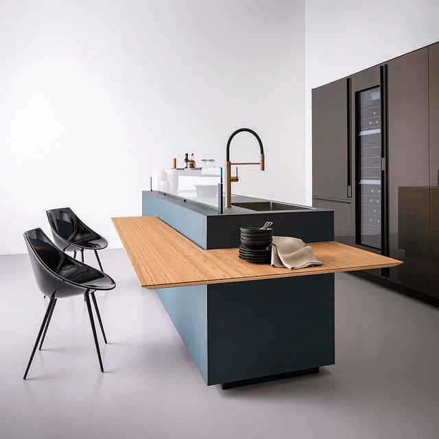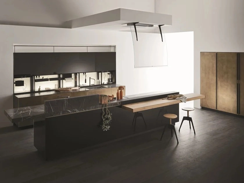 Our intuition led us to using “pure” (not bonded) materials on the aluminium structure of the Artematica kitchen doors, a move which opened up endless ideas and combinations. From the refined use of glass in every colour and finish to wood that conveys strong tactile sensations to lacquered surfaces and metal laminates, Artematica kitchen has been designed down to the last detail to make movements more fluid and more assured, to bring about a softer closure of cabinet doors and to respect the highest safety standards thanks to rounded corners and edges.