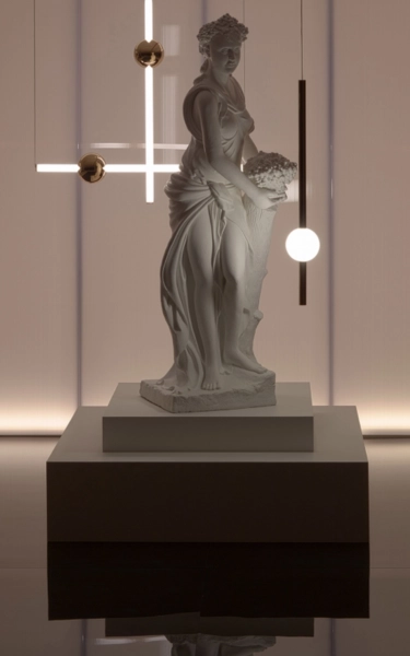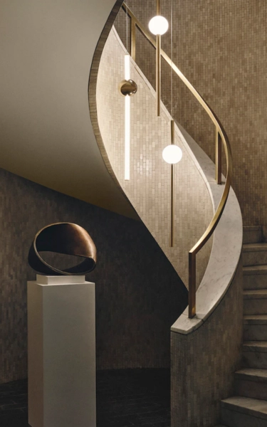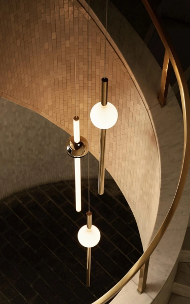 Orion comprises simple modular lights with opposing opaque and solid polished gold spheres along with opaque and solid gold tubes. These connect and expand horizontally and vertically to create bespoke constellations of light with infinite adaptations.