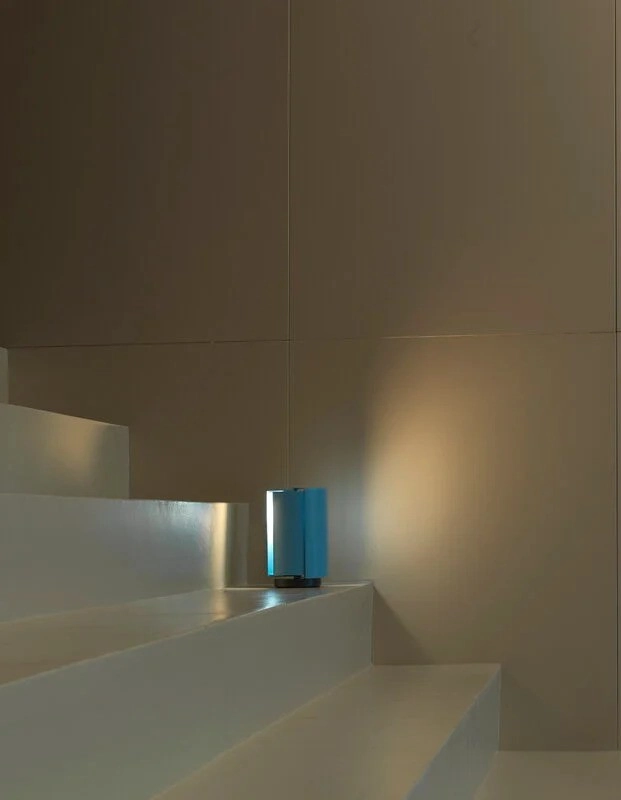 An avant-garde icon of the 1950s, Pivotante à Poser was conceived by Charlotte Perriand as an architectural element. The light emission interacts with the material texture, volumes, dimensions and graphic signs created by the two rotating diffusers, which allow both closing and opening of the light beam for
