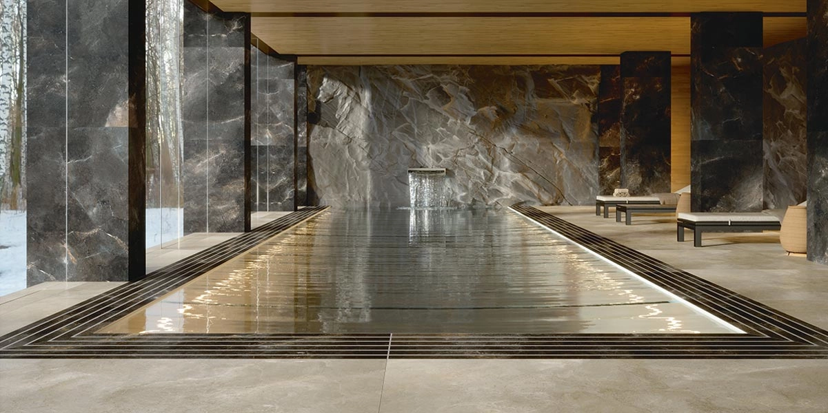 The series comes in three neutral shades - Black Aion, White Aion and Grey Aion – which blend together perfectly. The natural finish with matt effect enhances the texture of this material, making it look precious and revealing veins, nuances and all its charm.